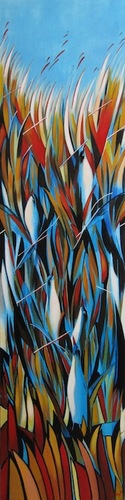 Birds (acrylic on canvas) - 120 x 30 cm